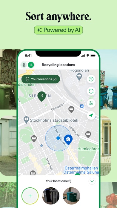 - Recycle: Locate nearby recycling or waste bins through the app or register your own.