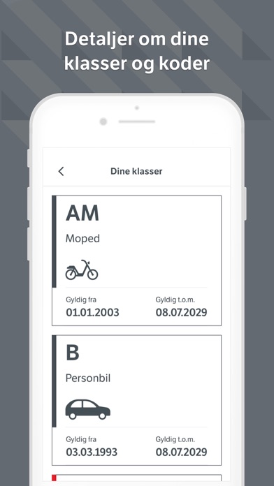 - oversikt over dine førerkortklasser og utløpsdatoer.