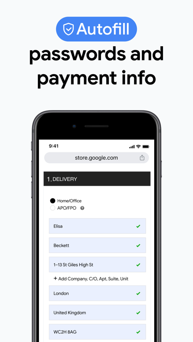 • AUTOFILL – save time typing by autofilling your saved payments, addresses and passwords.